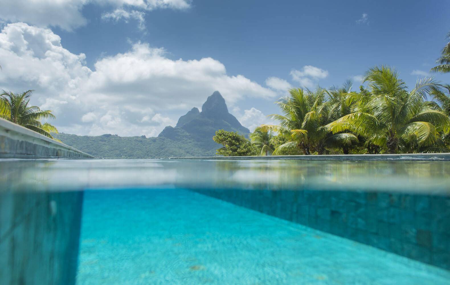 Set over 30 000 m² (7.5 acres) on an idyllic islet, the estate overlooks the turquoise blue waters of Bora Bora. It faces the enchanting incomparable lagoon and the mythic main island mountains on one side, whereas it overlooks the Pacific Ocean with the neighbouring islands of Tahaa and Raiatea on the other side.